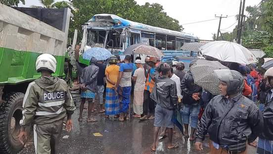 திருகோணமலை தோப்பூர் பட்டித்திடல் பகுதியில் இன்று காலை மட்டக்களப்பிலிருந்து மூதூர் நோக்கிப் பயணித்த பயணிகள் பேருந்தும் மூதூரிலிருந்து சேருவில நோக்கிப் பயணித்த டிப்பர் வாகனமும் வேகக் கட்டுப்பாட்டை இழந்து நேருக்கு நேர் மோதி விபத்துக்குள்ளானதில் பயணிகள் உள்ளடங்கலாக 26பேர் படுகாயமடைந்த நிலையில் மூதூர் தள வைத்தியசாலையில் அனுமதிக்கப்பட்டுள்ளனர்.