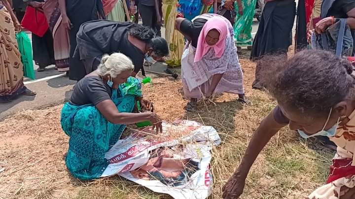 அதனை அடுத்து வாகனத்தில் இருந்து இறங்கிய காணாமல் ஆக்கப்பட்டவர்களின் உறவினர்கள் உள்ளிட்டோர் , பிரதமரை வரவேற்று கட்டப்பட்டு இருந்த பதாகைகளை கிழித்து , தீயிட்டு எரித்து தமது எதிர்ப்பினையும் ஆற்றாமையையும் வெளிப்படுத்தினரர்.