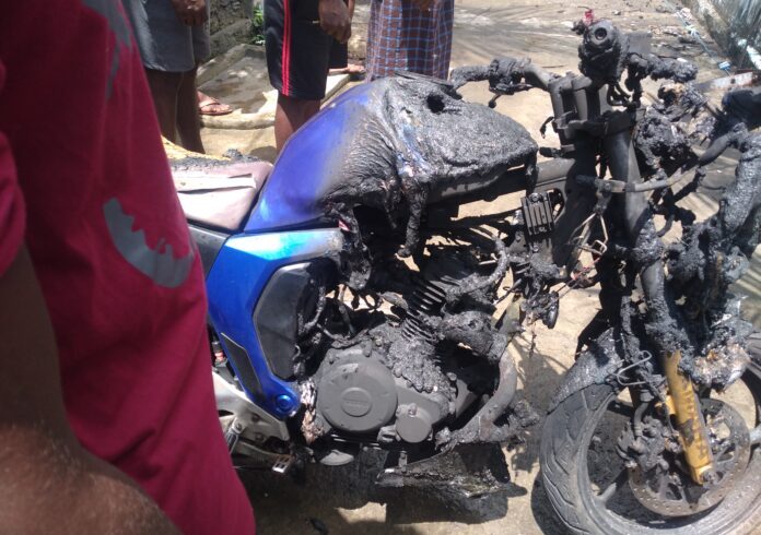 யாழ்ப்பாண பிரதேச செயலர் பிரிவிற்குட்பட்ட பாசையூர் இரண்டாம் குறுக்குத் தெரு வீதி பகுதியில் ஏற்பட்ட தீவிபத்தின் காரணமாக வீடு ஒன்று முற்றாக எரிந்து நாசமாகியுள்ளது வீட்டில் நிறுத்தி வைக்கப்பட்டிருந்த இரண்டு மோட்டார் சைக்கிள் மற்றும் மின் பிறப்பாக்கி இயந்திரம் என்பன எரிந்து நாசமாகி உள்ளன