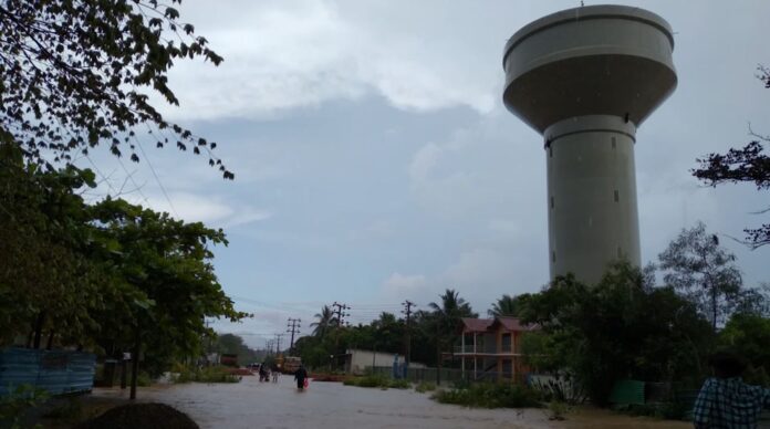 கிளிநொச்சி நகர பகுதிகளின் சில இடங்கள், வெள்ள நீரினால் தேங்கியிருந்தன.