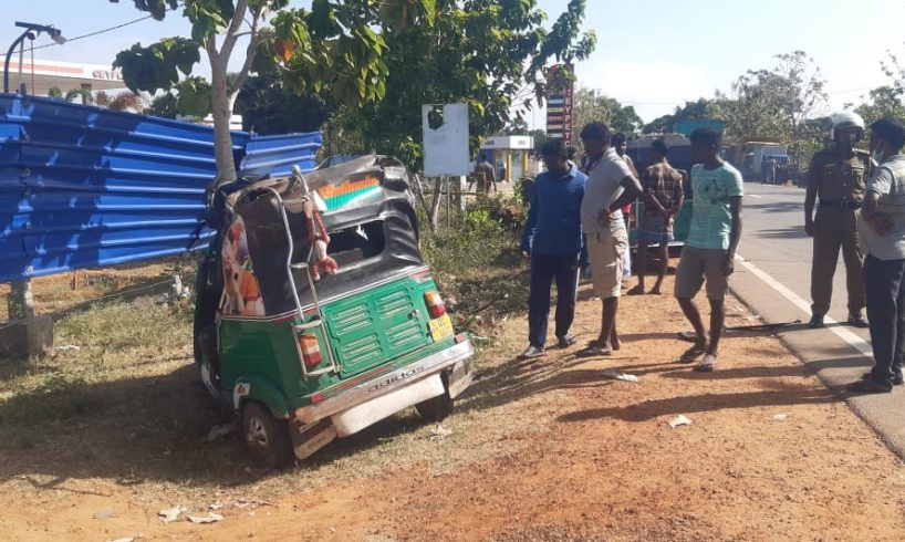 முச்சக்கர வண்டிக்கு எரிபொருளைப் பெறுவதற்காக வடமராட்சி ஆழியவளை பகுதியிலிருந்து இயக்கச்சி எரிபொருள் நிரப்பு நிலையத்திற்கு வந்த வேளை யாழ்ப்பாணத்தில் இருந்து திருகோணமலை நோக்கி சுற்றுலா பயணிகளை கொண்டு சென்ற பேருந்து மோதியதில் முச்சக்கர வண்டியின் சாரதி பலத்த காயங்களுக்கு உள்ளானார்.