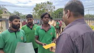 போராட்டத்தில் ஈடுபட்ட குழுவினர் மாவட்ட அரசாங்க அதிபரை சந்தித்து மகஜர் ஒன்றை கையளிக்க சென்றனர். இந்த நிலையில் குறித்த போராட்டக்காரருடன் மேலதிக அரசாங்க அதிபர் எஸ் சிறிமோகன் கலந்துரையாடினார்.