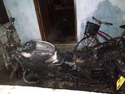 தீ வைத்த மோட்டார் சைக்கிள் முற்றாகவே எரிந்து நாசமாகியுள்ளது.