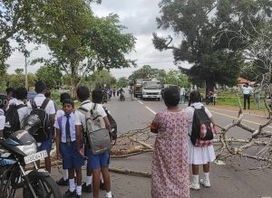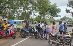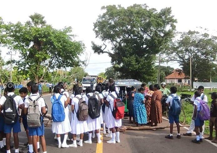 பனிக்கன்குளம், கிழவன்குளம் மாணவர்களும், பெற்றோரும் ஏ-9 வீதியை முடக்கி போராட்டம்.