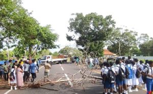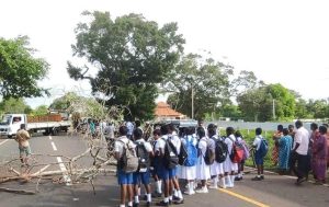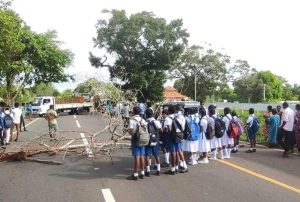 நடவடிக்கைக்காக அமர்த்தப்பட்டு அந்த கிழமை அனைத்து மாணவர்களையும் பேருந்துகள் ஏற்றி சென்றன அதன் பின்னர் கடந்த வாரம் மீண்டும் மாணவர்களை பேருந்துகள் ஏற்றாமல் சென்றது. இவ்வாறான நிலையில் நேற்று காலை முதல் பாடசாலையில் பரீட்சையில் கலந்து கொள்ள வேண்டிய நிலையில் மாணவர்கள் 6.40 மணிமுதல் வீதியில் நின்று 8 மணியை கடந்தும் பேருந்துகள் எவையும் ஏற்றி செல்லாத காரணத்தினால் ஏ_9 வீதியை மறித்து போராட்டம் நடத்தினர்.