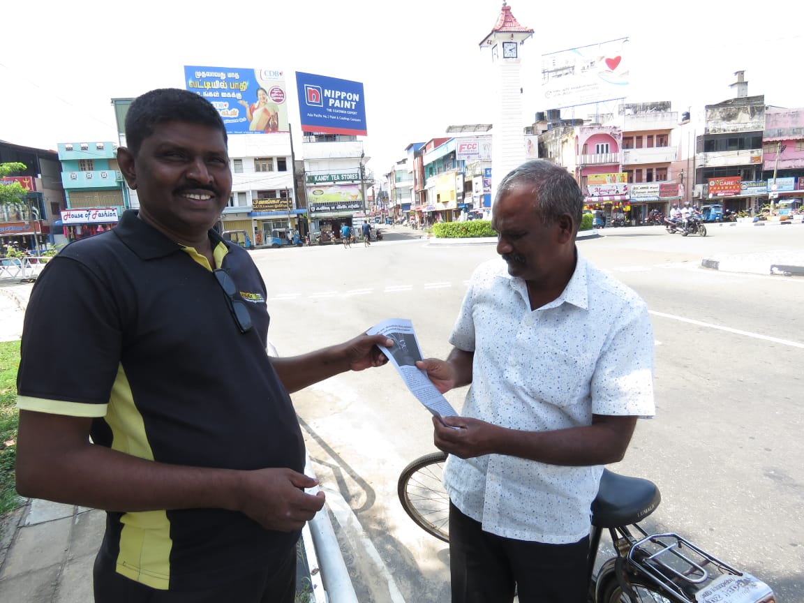 இதற்கமைய கிழக்கு ஊடக மையத்தின் ஏற்பாட்டில் ஊடகவியலாளர்கள் ஒன்று திரண்டு மட்டக்களப்பு காந்திபூங்காவிற்கு முன்னால் மற்றும் பஸ்தரிப்பு நிலையத்தில் மக்களுக்கு துண்டுபிரசுரத்தை வழங்கும் நடவடிக்கையில் ஈடுபட்டனர்.
