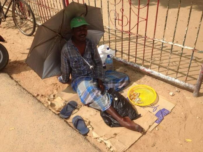 யாழ்ப்பாணம் நல்லூர் ஆலயம் முன்பாக யாசகம் பெறும் ஒருவர் இன்றைய தினம் (26) விடுதலைப்புலிகளின் தலைவர் 68வது பிறந்ததினத்தை இனிப்பு கொடுத்து கொண்டாடி மகிழ்ந்தார்.