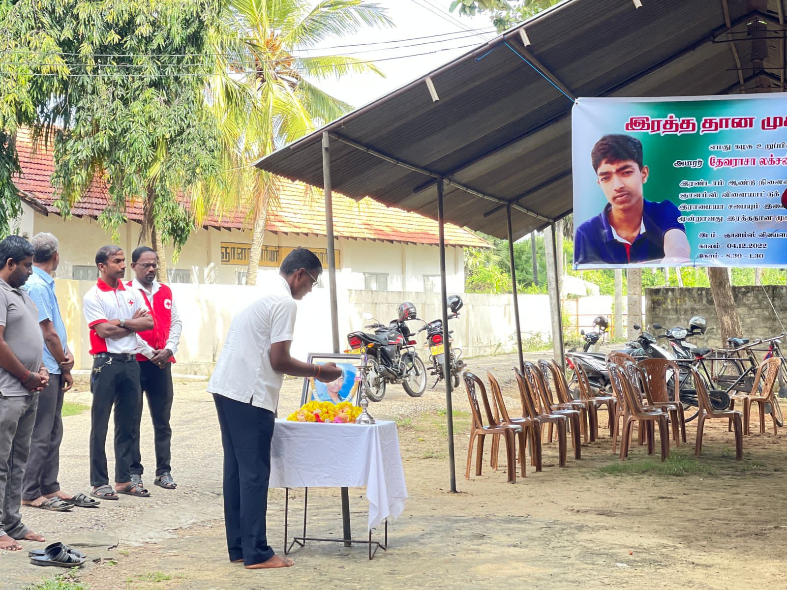 அமரர் தேவராசா லக்சன் அவர்களின் 2ம் ஆண்டு நினைவை முன்னிட்டு கரவெட்டி நுணுவில் குளக்கோட்டு விநாயகர் ஆலய இராமையா மட அன்னதான சபையும்,  ஞானம்ஸ் விளையாட்டு கழக உறுப்பினர்களும் இணைந்து இலங்கை செஞ்சிலுவை சங்க கரவெட்டி கிளை அனுசரணையில்   இரத்ததான முகாம் ஒன்றை  இன்று காலை கழக மண்டபத்தில் நடாத்தியுள்ளனர்.