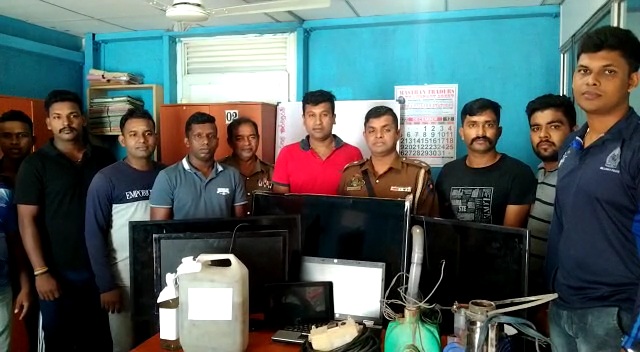 இதன்போது, தொலைக்காட்சி பெட்டிகள் 04, மடிக்கணணி 01, கைத்தொலைபேசி 01, நீர்ப்பம்பிகள் 03, என்பவற்றுடன் சந்தேக நபரிடமிருந்து 10 லிற்றர் கசிப்பும் போலிசாரால் பறிமுதல் செய்யப்பட்டுள்ளது.