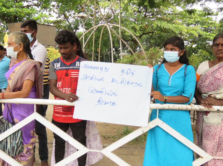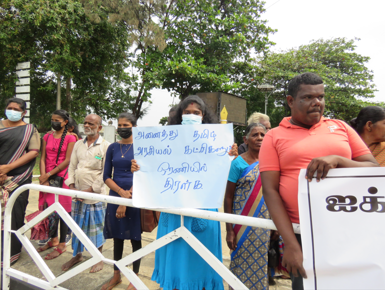 தமிழ் மக்களின் மத கலாச்சார இடங்கள் தொல் பொருள் பிரதேசம் என அடையாளப்படுத்தப்பட்டு ஆக்கிரமிக்கப்படுவதும் அழிக்கப்படுவதும் உடன் நிறுத்தல் வேண்டும். பயங்கரவாத தடை சட்டத்தின் கீழ் கைது செய்யப்பட்ட அரசியல் கைதிகள் அனைவரும் விடுதலை செய்யப்பட வேண்டும் என வாசகங்கள் கொண்ட சுலோகங்கள் ஏந்தியவாறு ஆர்பாட்டத்தில் ஈடுபட்டனர்.
