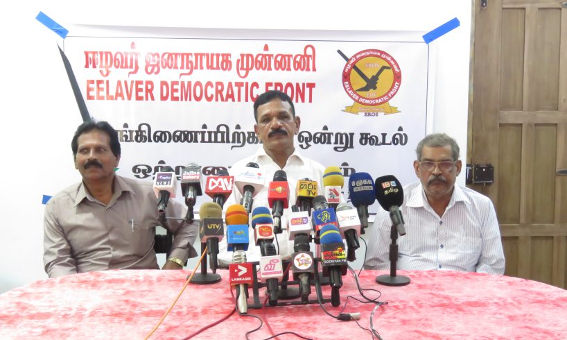 கடந்த சில வருடங்களாக சில வெளிநாட்டு சக்திகளின் செயற்பாடுகள் காரணமாக எமது ஈழவர் ஜனநாயக முன்;னணி கட்சி இடைநிறுத்தப்பட்டிருந்தது. கடந்த டிசம்பர் 23ம் திகதி நடைபெற்ற விசாரணையின் அடிப்;படையில் மீண்டும் ஈழவர் ஜனநாயக முன்னணியின் செயலாளர் நாயகமாக நான் தெரிவு செய்;யப்பட்டு எமது கட்சி தொடர்ந்து செயற்பட நடவடிக்கைகள் ஆரம்பிக்கப்பட்டுள்ளன.