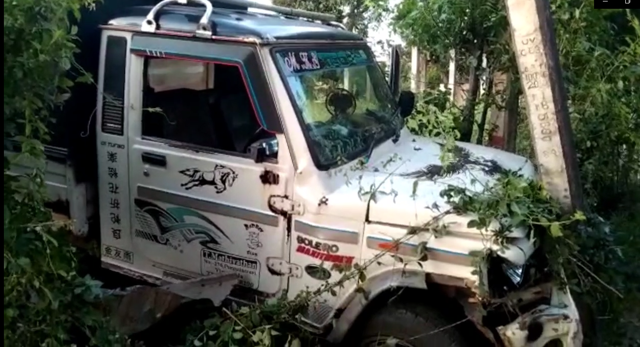 வேக கட்டுப்பாட்டை இழந்த கப் வாகனம் மின் கம்பத்துடன் மோதுண்டு விபத்துக்குள்ளானது.