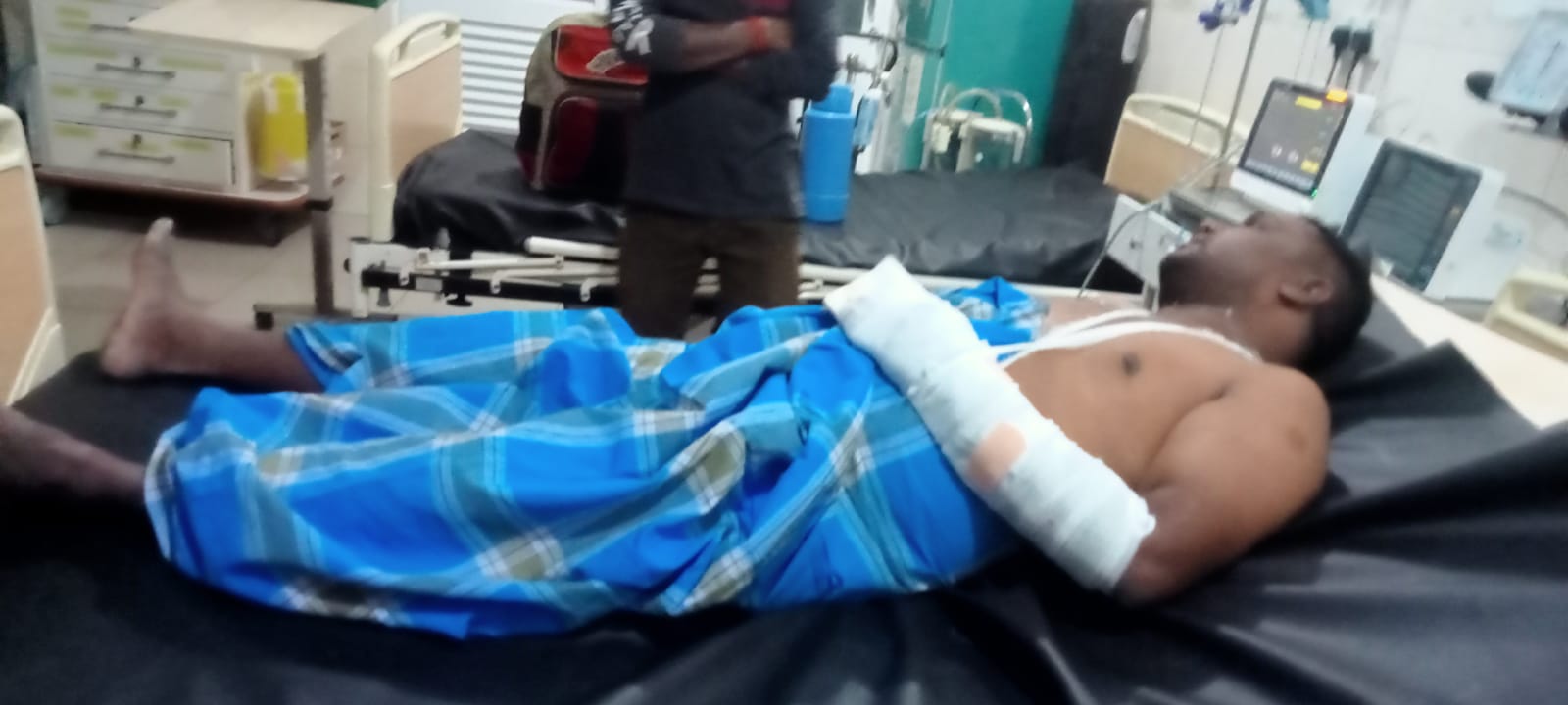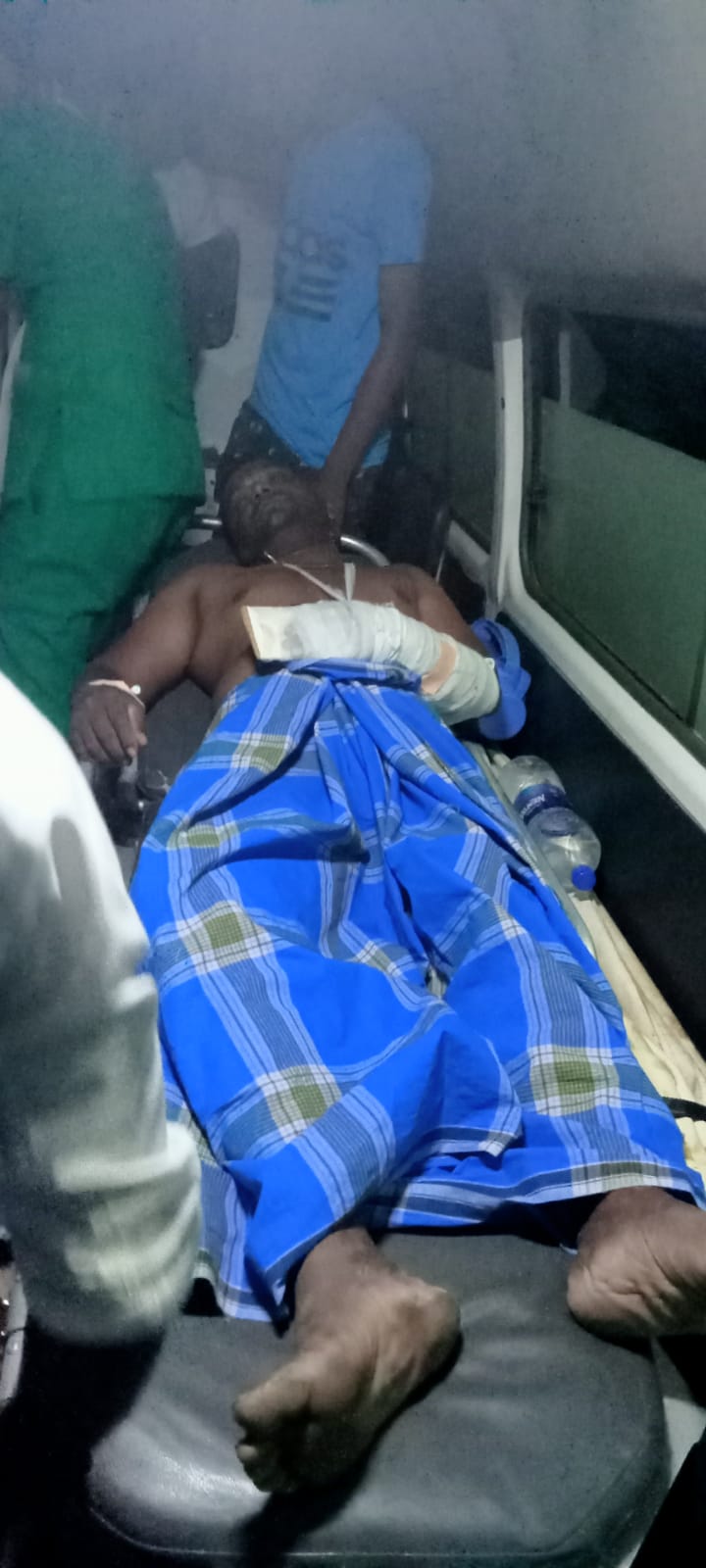 நடத்தியதில் கிராம தலைவர் பலத்த காயயங்களுக்கு உள்ளான நிலையில் பளை வைத்தியசாலைக்கு கொண்டு செல்லப்பட்டு பின்னர் அங்கிருநஸது மேலதிக சிகிச்சைக்காக. கிளிநொச்சி வைத்தியசாலைக்கு மாற்றப்பட்டுள்ளார்.
