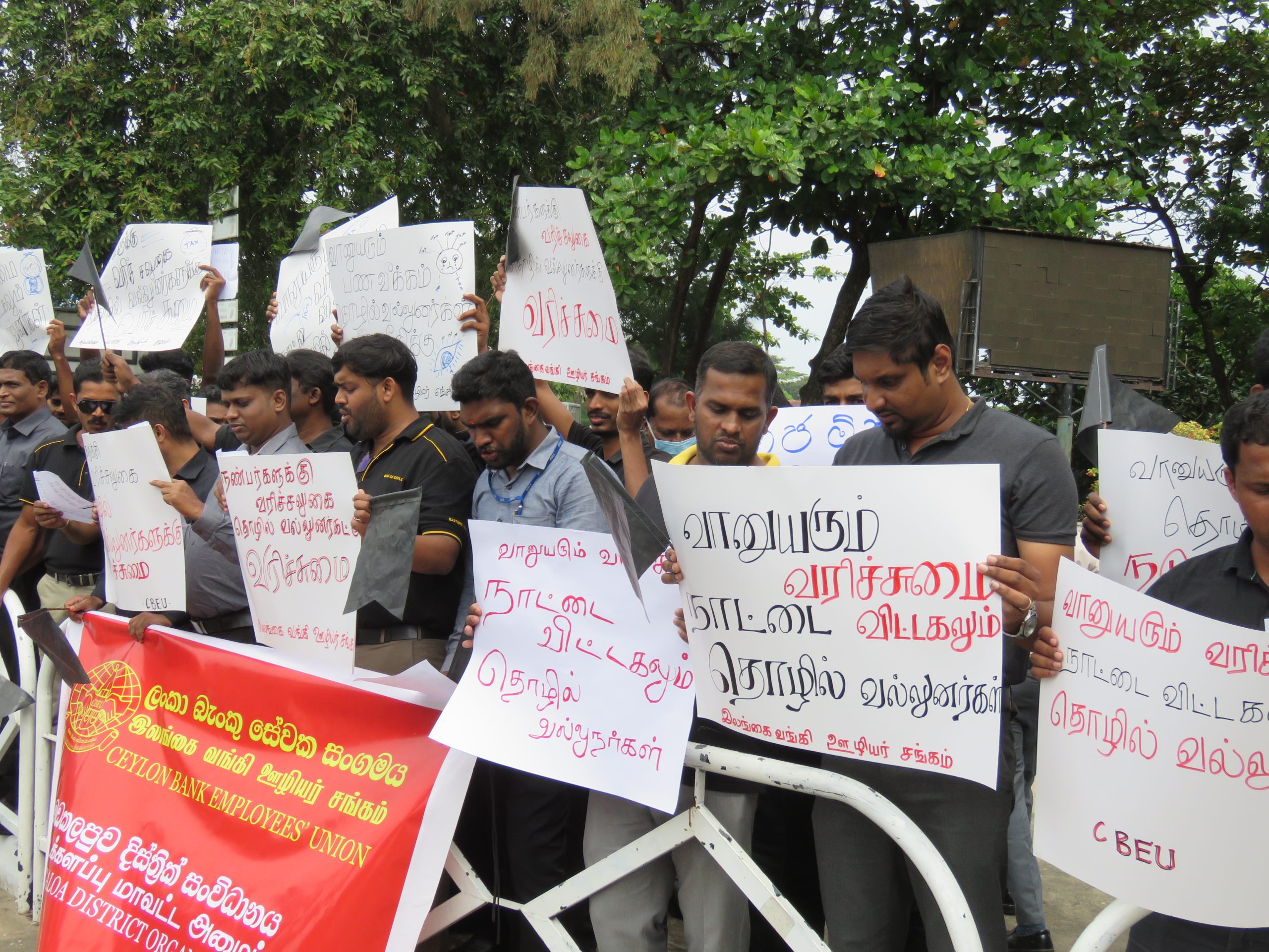 அரசாங்கத்தல் நிறைவேற்றபட்ட வரிக் கொள்கையை எதிராக இலங்கை வங்கி ஊழியர் சங்கம், பல்கலைக்கழக ஆசிரியர் சங்கங்களின் சம்மேளனம், அரச பல்வைத்திய சங்கம், இணைந்து ஆர்ப்பாட்டத்திற்கு அழைப்பு விடுத்ததையடுத்து காந்திபூங்காவிற்கு முன்னால் நூற்றுக்கு மேற்பட்ட உத்தியோகத்தர்கள் ஒன்று திரண்டனர்