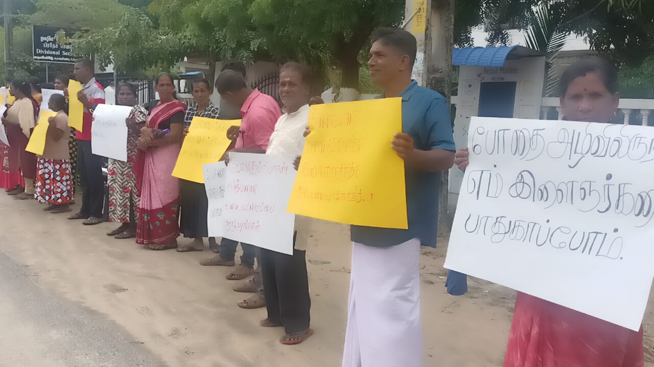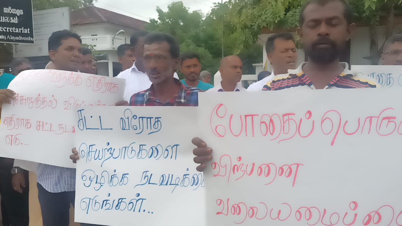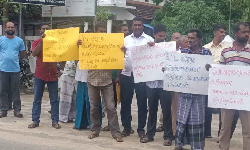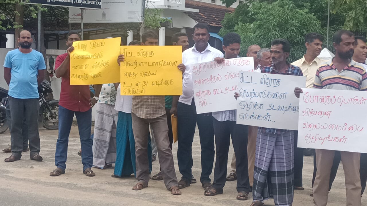அம்பாறை ஆலையடிவேம்பு பிரதேசத்தில் போதை பொருள் வியாபாரிகளினால் இடம்பெற்றுவரும் போதை பொருள் வியாபாரம் சட்டவிரோத சூதாட்ட நிலையம் ஆசிரியர் மீது அச்சுறுத்தல் போன்ற சட்டவிரோத செயற்பாடுகளை நிறுத்தகோரி பொதுமக்கள் பிரதேச செயலகத்தின் முன்னாள் இன்று வெள்ளிக்கிழமை (3) கவனயீர்பு ஆர்ப்பாட்டத்தில் ஈடுபட்டனர்.