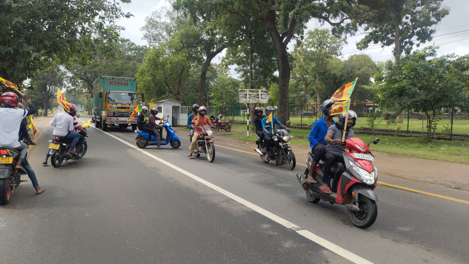பரந்தன் சந்தியிலிருந்து, டிப்போ சந்திவரை இளைஞர்கள் தேசிய கொடியை ஏந்தியவாறு மோட்டார் சைக்கிளில் பயணித்து கொண்டாட்டத்தில் ஈடுபட்டனர்.