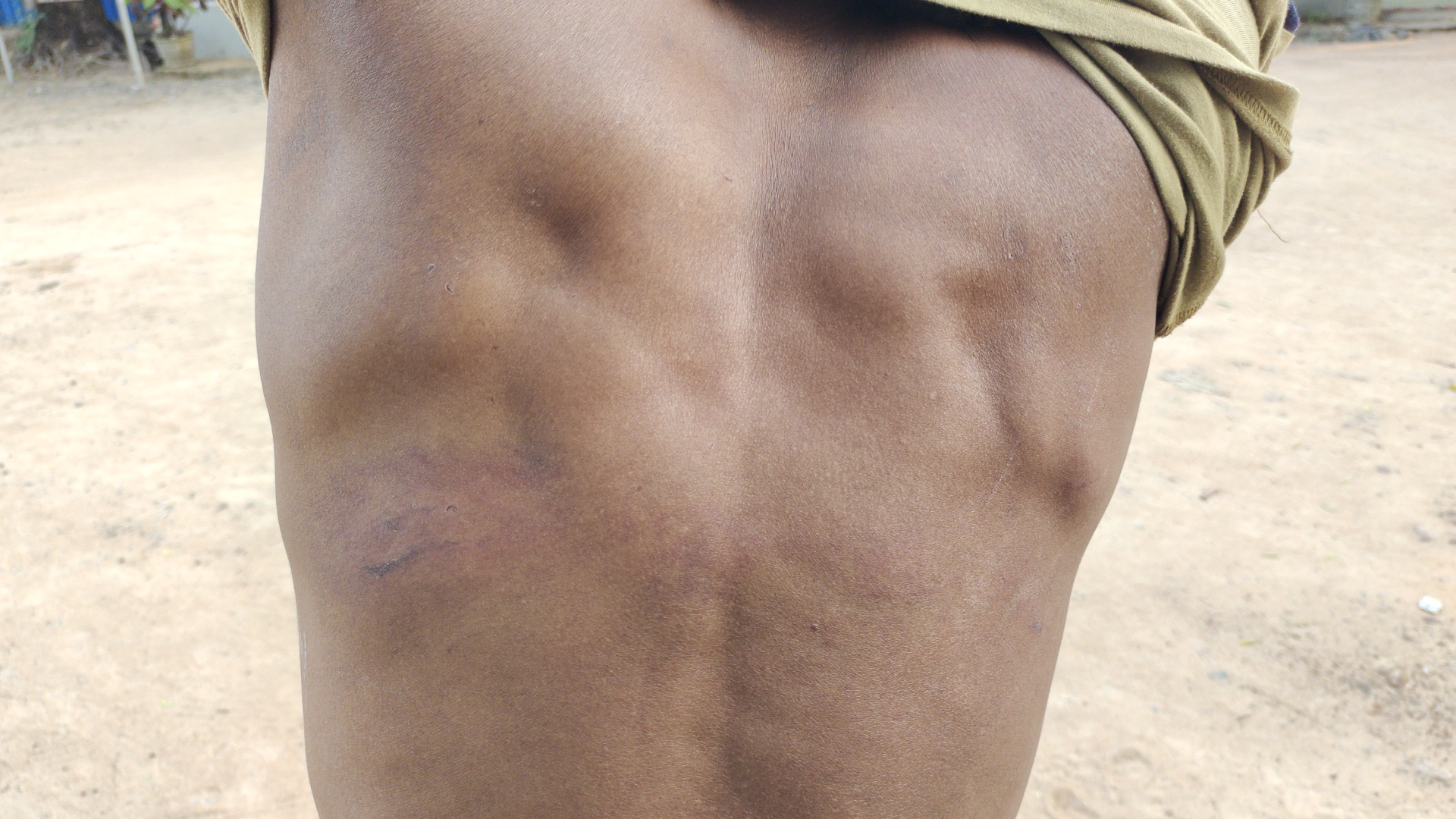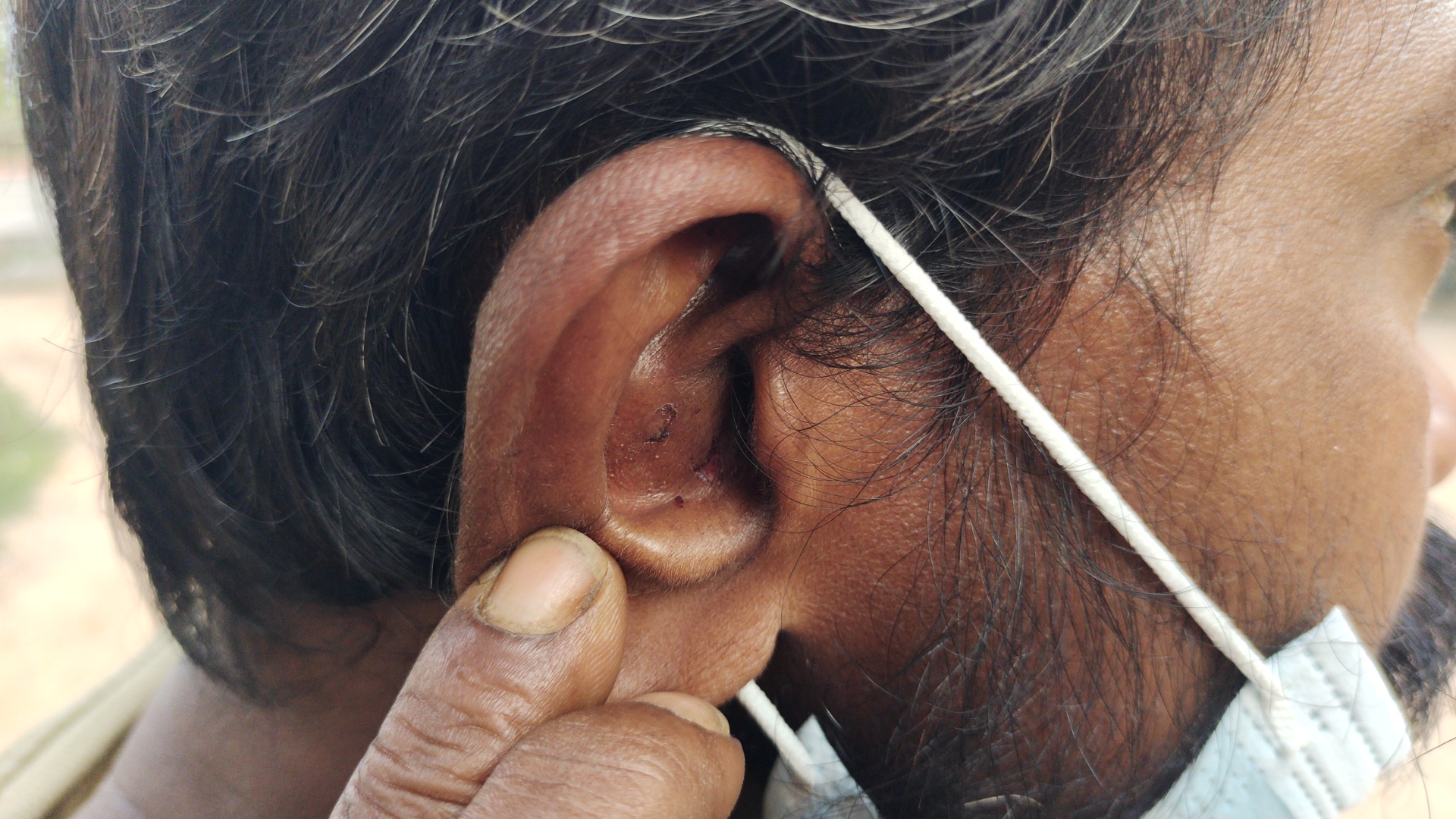 தொடர்ந்து, இன்று காலை கிளிநொச்சி வைத்தியசாலையில் சிகிச்சைக்காக அனுமதிக்கப்பட்டு சிகிச்சை பெற்று வருவதாகவும், கண்டல் காயங்கள், நோவுகளுடன் விறைப்பும் காணப்படுவதுடன், காதிலும் பாதிப்பு ஏற்பட்டுள்ளதாக தெரிவிக்கின்றார்.