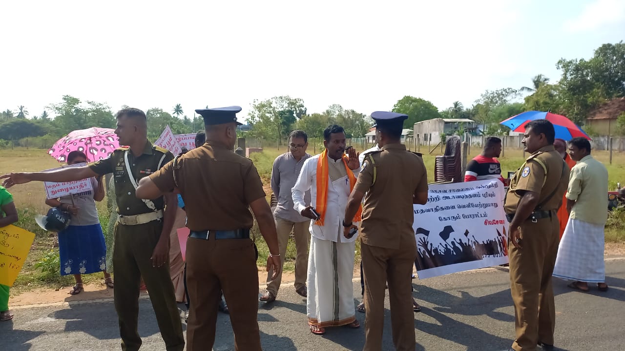 இதன்போது போராட்டகாரர்கள் பந்தல் அமைத்து போராட்டத்தில் ஈடுபட முற்பட்டபோது அங்கு வருகைதந்த அச்சுவேலி பொலிஸார் அவ்வாறு செய்ய முடியாதென தெரிவித்ததுடன் போராட்டத்தில் ஈடுபட்டவர்களின் விபரங்களை சேகரித்தனர்.
