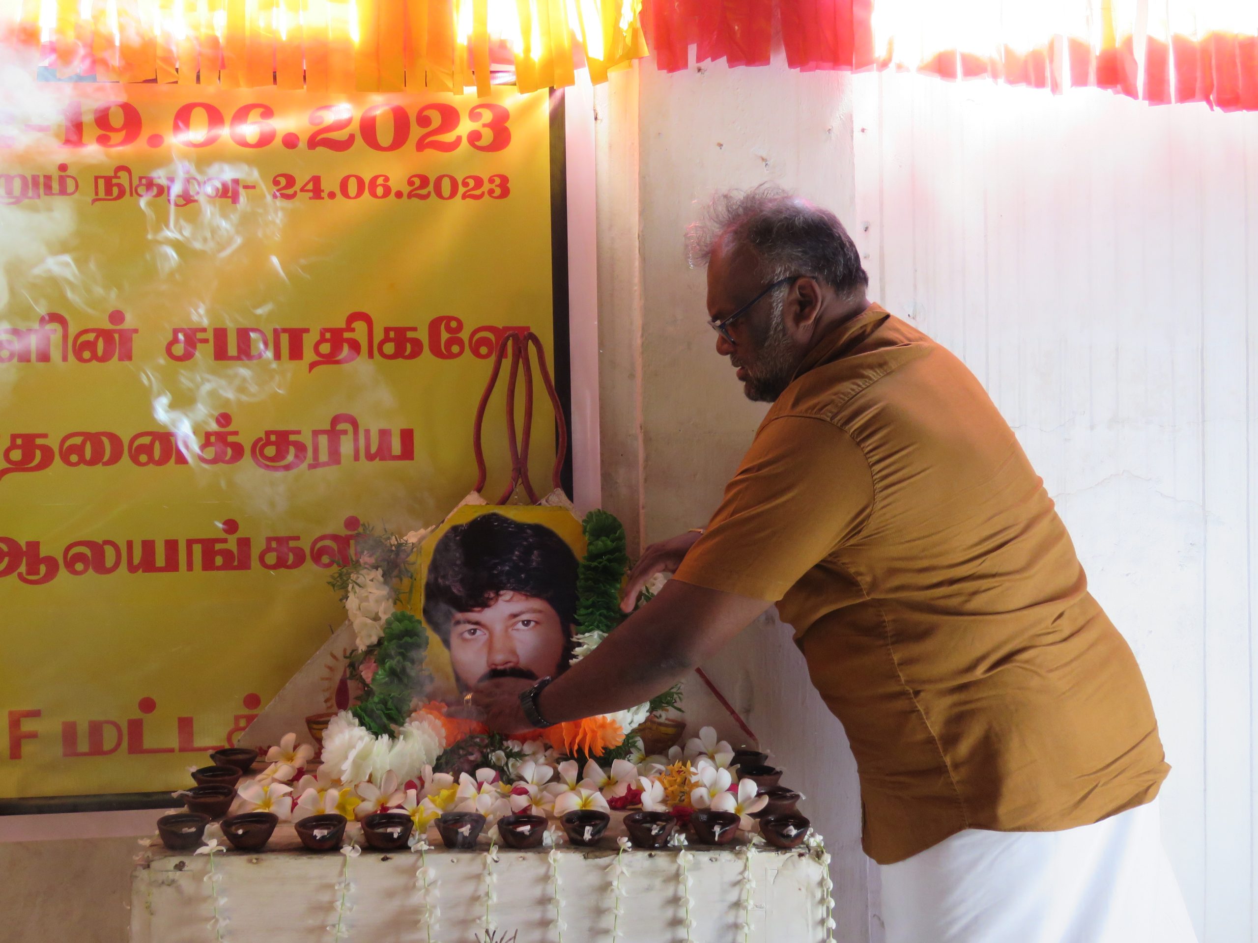 உள்ளூராட்சி மன்றங்களின் முன்னால் உறுப்பினர்கள், உயிர்நீத்தவர்களின் உறவுகள், மற்றும் பிரதேச அமைப்பாளர்கள் சமூக அமைப்புக்களின் பிரதிநிதிகள் உட்பட நூற்றுக்கு மேற்பட்டோர் கலந்துகொண்டு படுகொலை செய்யப்பட்ட பத்மநாபாபின் திருஉருவ படத்திற்கு மலர்;மாலை அணிவித்து ஈகைச்சுடர் ஏற்றி மலர் தூவி இரண்டு நிமிட மௌன அஞ்சலி செலுத்தினர்.