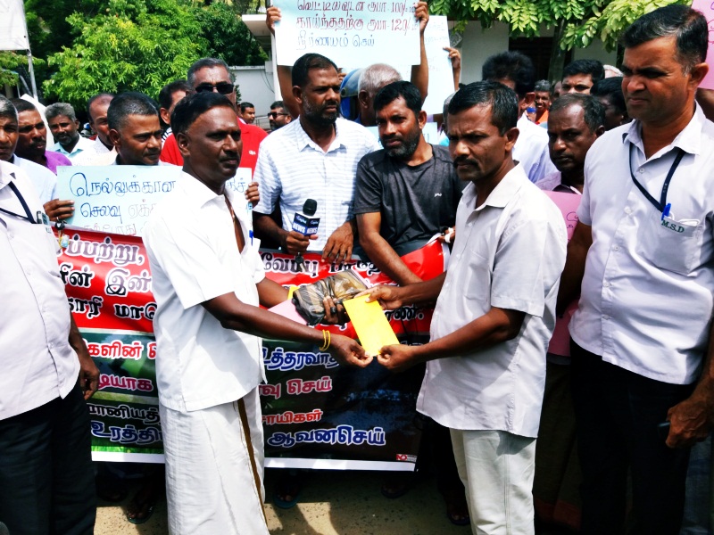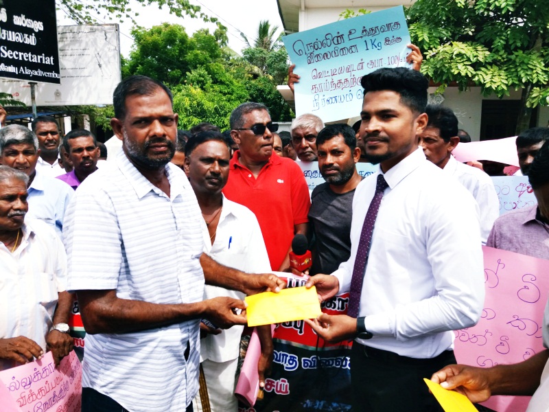 இதில் ஒரு கிலோ நெல்லை 100 ரூபாவாகவும் காய்ந்த ஈரப்பதன் அற்ற நெல்லை கிலோ 120 ரூபாவாகவும் நிர்ணயம் செய்து உடனடியாக நெல் சந்தைப்படுத்தும் களஞ்சிய சாலையை திறந்து நெல்லினை முழுமையாக கொள்வனவு செய்,