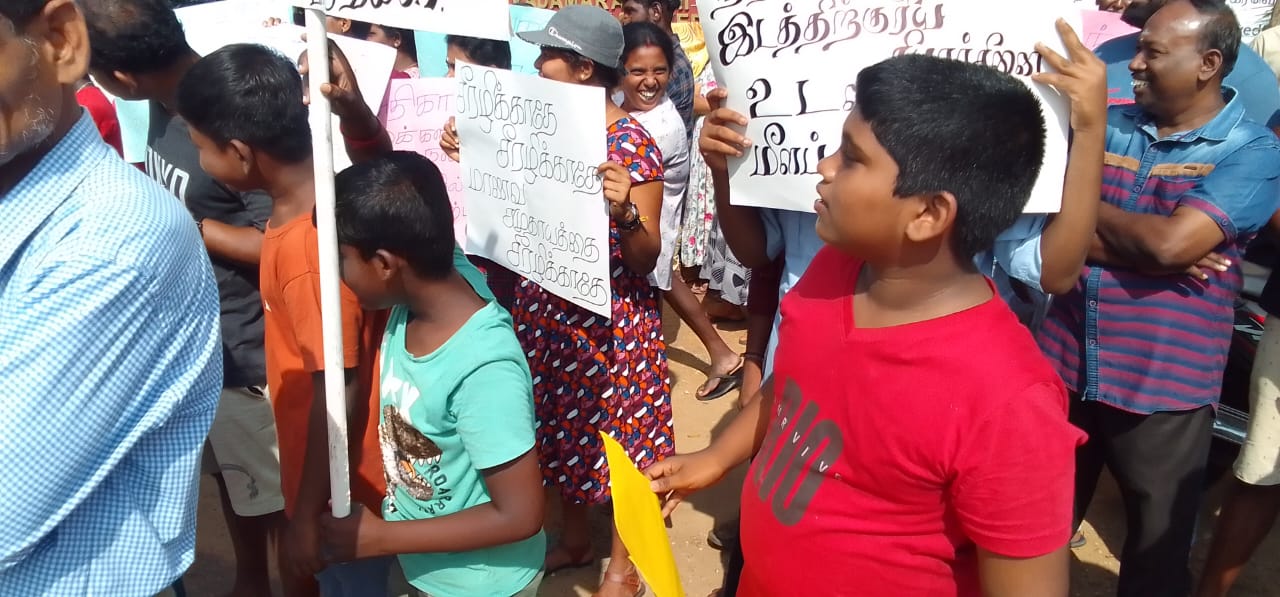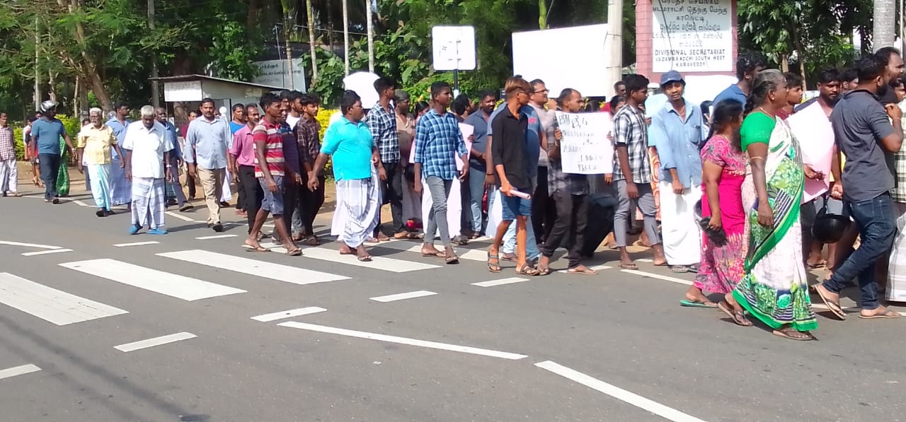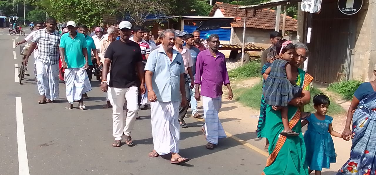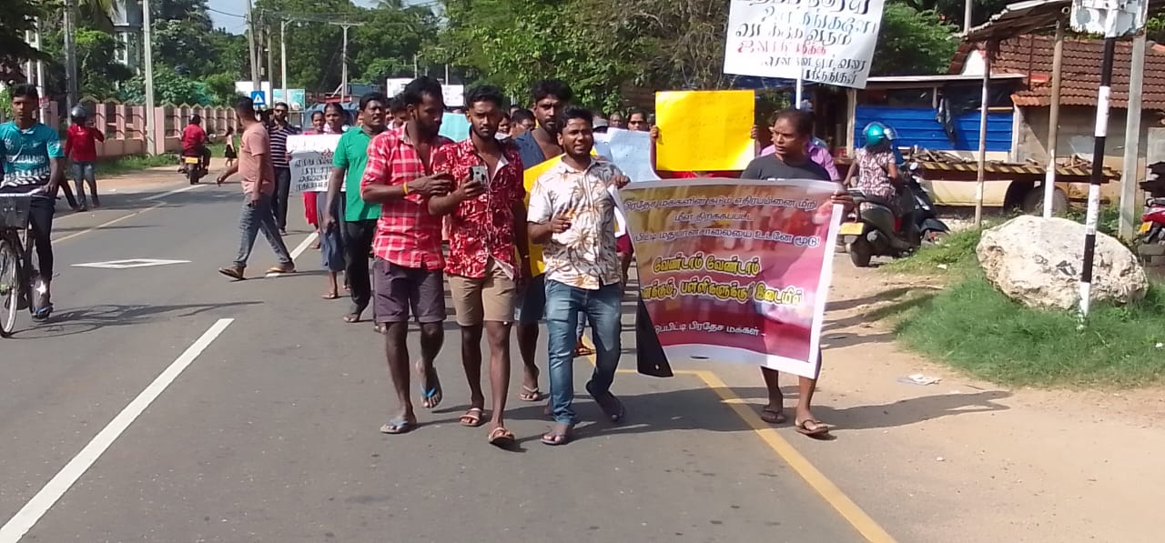 உடுப்பிட்டி சந்தியிலிருந்து ஆரம்பமான போராட்டம் வடமராட்சி தெற்கு மேற்க்கு பிரதேச செயலகம் முன் முடிவடைந்துள்ளது.