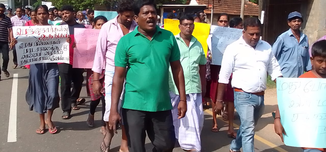 யாழ்ப்பாணம் வடமராட்சி உடுப்பிட்டியில் அமைந்துள்ள பாடசாலைகள், ஆலயங்கள் மக்கள் குடியிருப்புக்களுக்கு அருகில் திறக்கப்பட்டுள்ள மதுபான சாலையை அகற்றக் கோரி பிரதேச மக்களால் போராட்டம் ஒன்று இன்று காலை 9;00 மணியிலிருந்து முன்னெடுக்கப்பட்டுள்ளது.