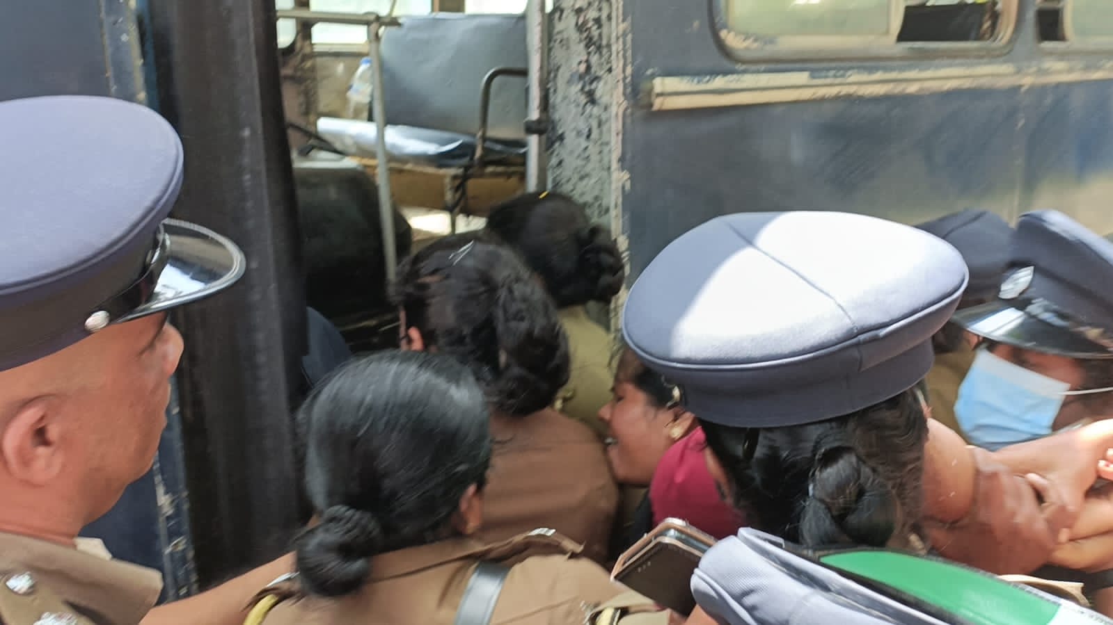 கைது செய்யப்பட்ட இருவருக்கும் பொலிஸாருக்கிடையே தர்க்கமும் ஏற்பட்டிருந்தது. பெண் பொலிஸாரினால் இருவரும் பேருந்தில் ஏற்றப்பட்டு கைது செய்யப்பட்டார்