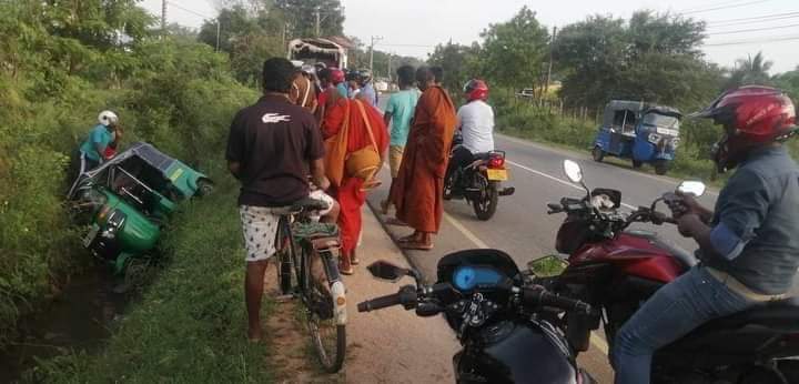 இவ்விபத்தில் முச்சக்கர வண்டியில் பயணித்து பௌத்த பிக்கு இருவரில் ஒருவர் காயமடைந்ததாகவும் தெரிய வருகின்றது.