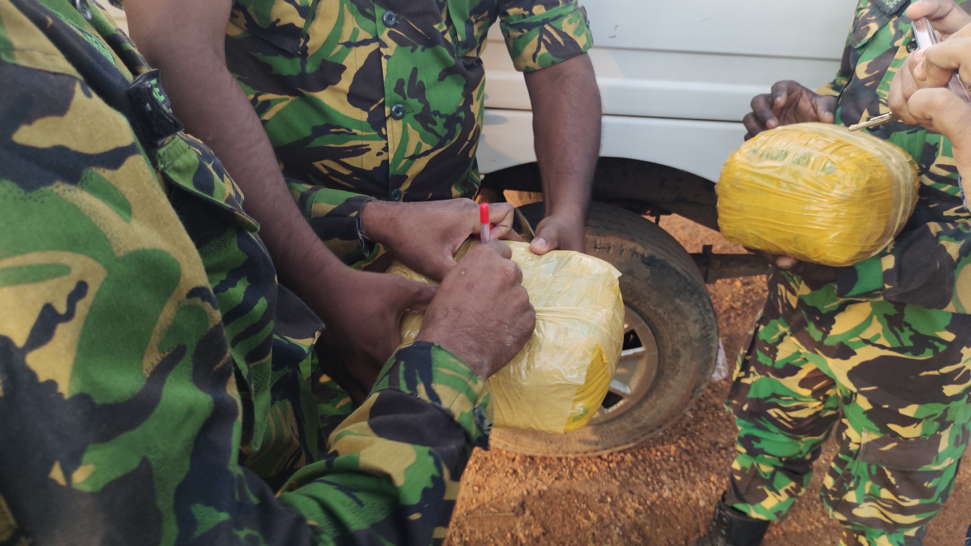 புலனாய்வு பிரிவினரும், கிளிநொச்சி விசேட அதிரடிப்படையினரும் அவர்களது புலனாய்வு பிரிவினரும் குறித்த வாகனத்தை பின் தொடர்ந்த நிலையில் குறித்த வாகனம் முறிகண்டி பகுதியில் உள்ள வசந்தநகர் பிரதான வீதியில் திரும்பியுள்ளது.