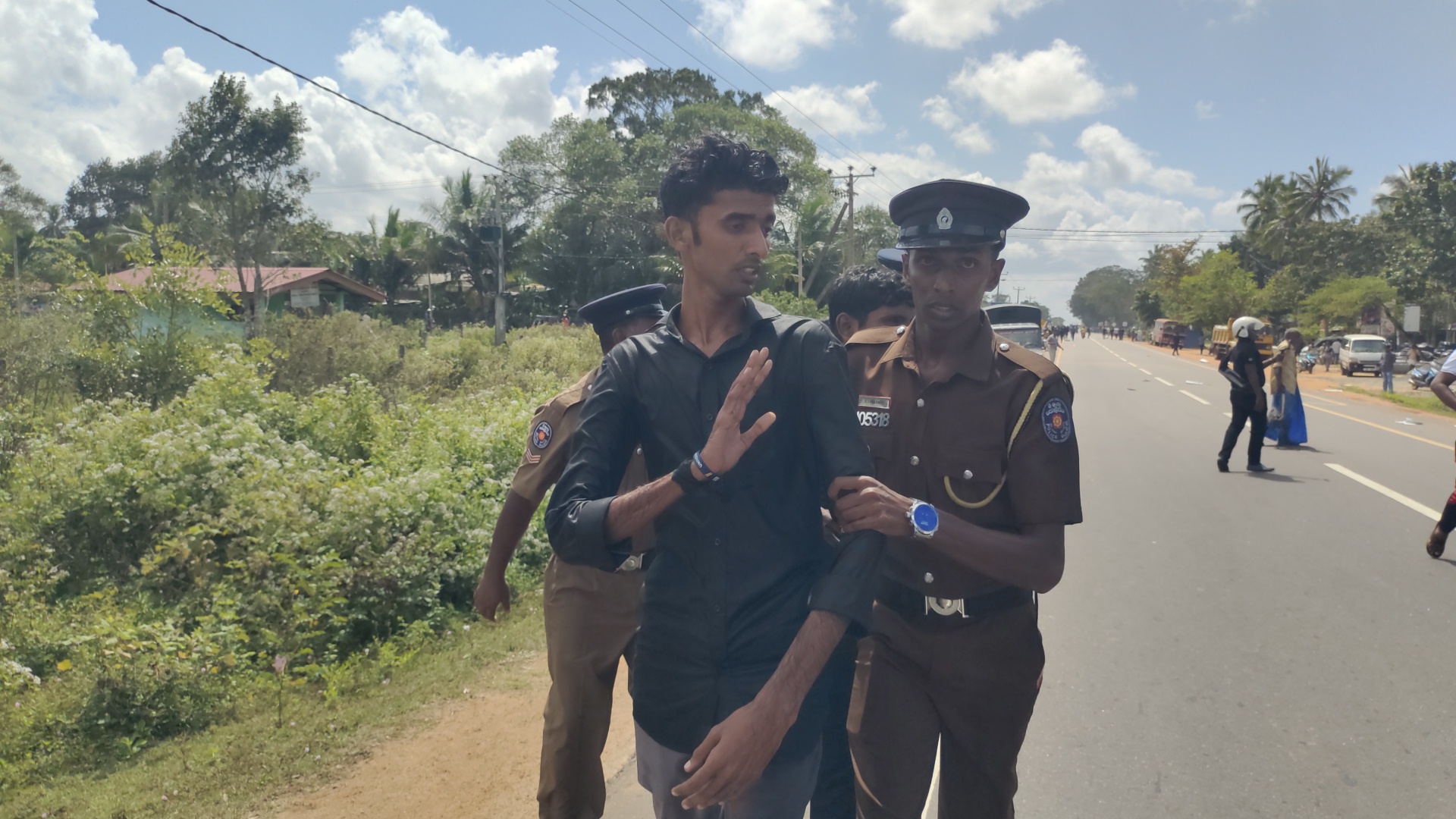 குறித்த வீதியால் பயணித்த நோயாளர் காவு வண்டிக்கு இடம் விடுமாறு பொலிசார் குறிப்பிட்டனர். குறித்த சந்தர்ப்பத்தில் அமைதியின்மை ஏற்பட்டது.