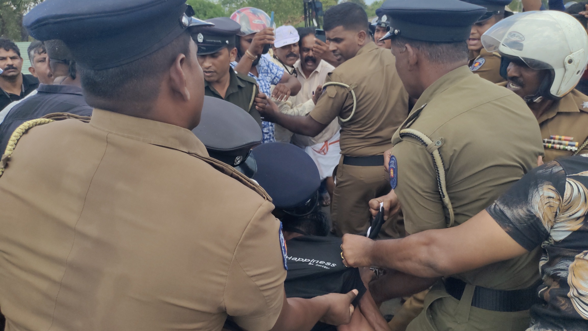 குறித்த இடத்தி வருகை தந்த போரட்டக்காரர்கள் வீதியை மறித்து போராட்டத்தில் ஈடுபட்டனர். இதன்போது பொலிசாருக்கும் போராட்டக்காரருக்கும் இடையில் முறுகல் நிலை ஏற்பட்டது.