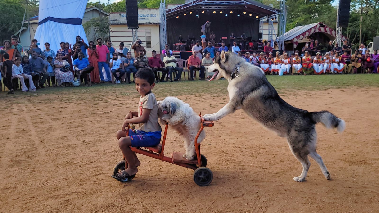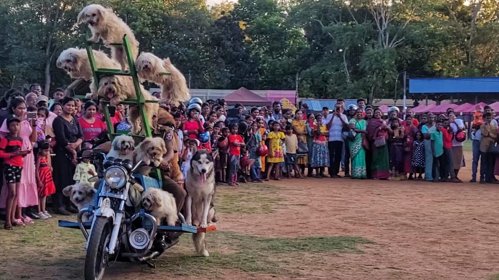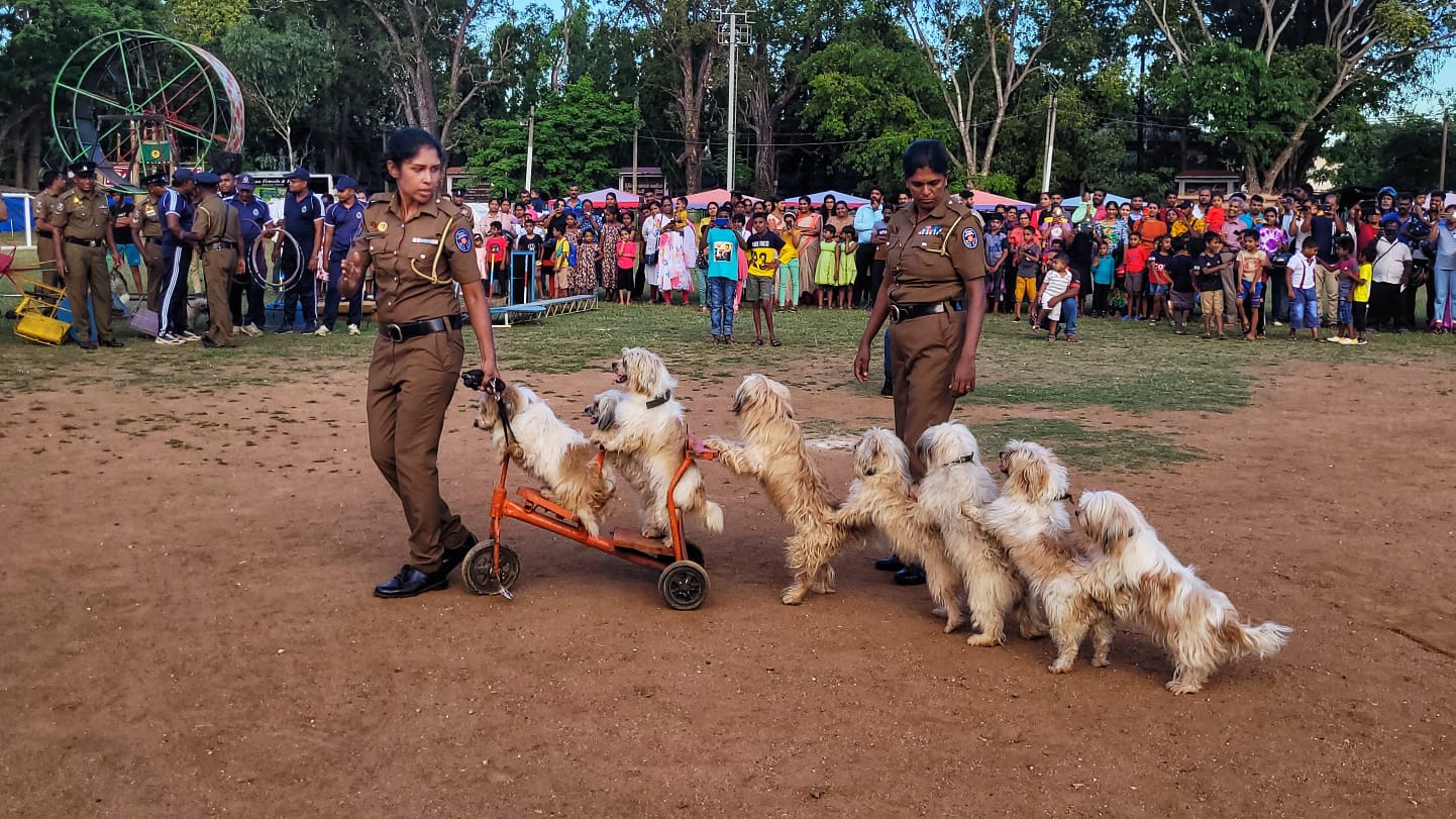 கண்டியில் இருந்து கொண்டு அழைத்து வரப்பட்ட பயிற்றப்பட்ட பொலிஸ் மோப்ப நாய்கள், இராட்டினத்தில் சுற்றுதல், தலையில் நீர் கொண்டு செல்லல், சிறுவர்களை இராட்டினத்தில் ஏற்றி சுற்றுதல், மோட்டர் சைக்கிளில் பயணித்தல், வளையத்தின் ஊடாக பாய்தல், நெருப்பு வளையத்தின் ஊடாக பாய்தல், துப்பாக்கி சூடு நடத்தியரை விரட்டிப் பிடித்தல் போன்ற பல சாகச நிகழ்வுகளை மோப்ப நாய்கள் மேற்கொண்டிருந்தன.