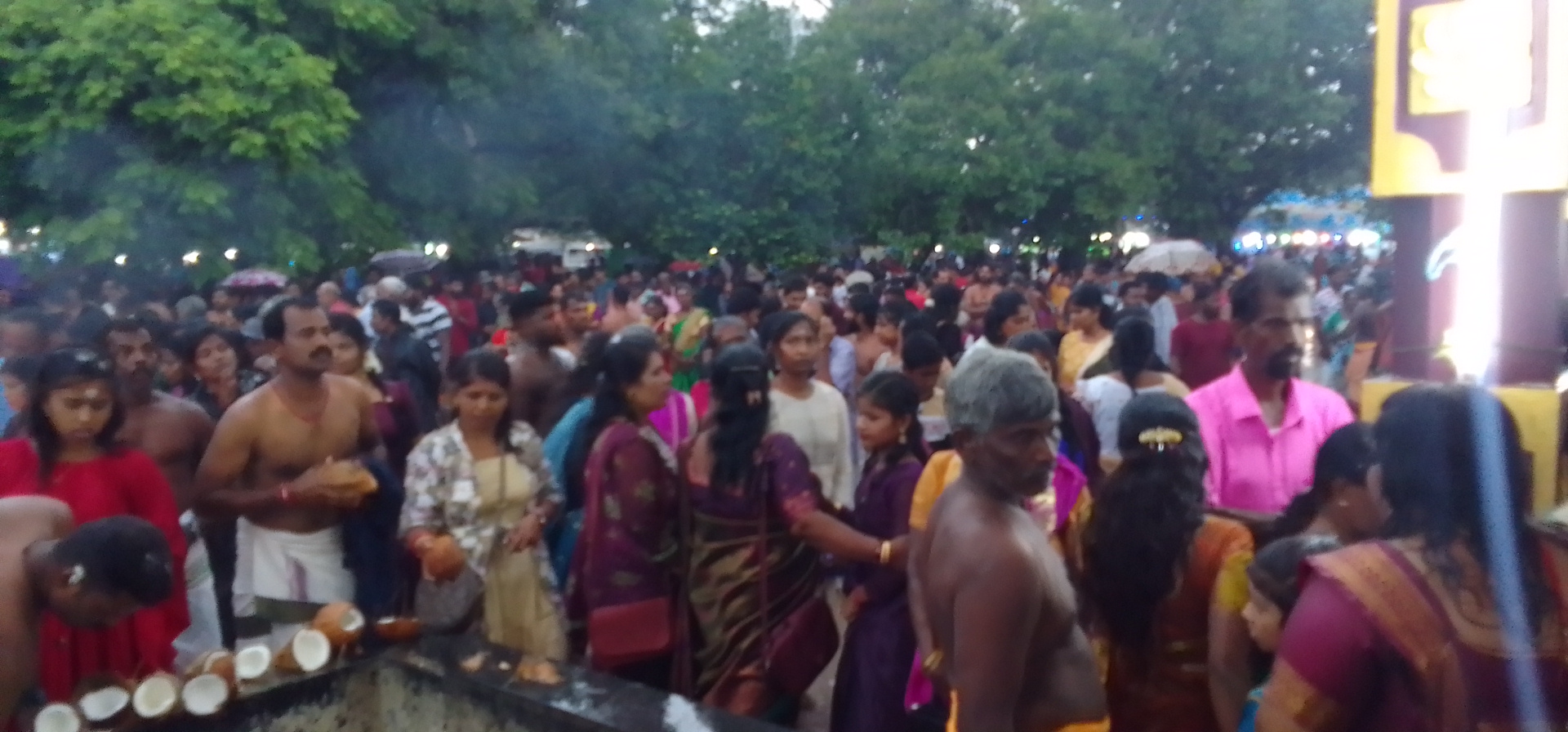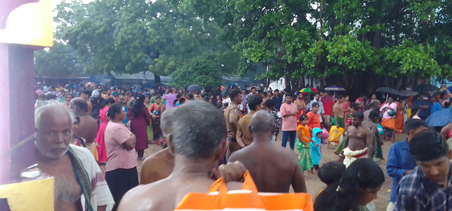 கொட்டும் மழையையும் பொருட்படுத்தாது நூற்றுக்கணக்கான பக்தர்கள் கலந்து கொண்டனர்.