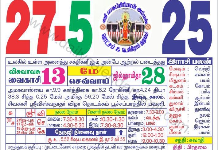 நாளைய ராசி பலன், விசுவாவசு வருடம் வைகாசி 13, செவ்வாய்கிழமை, மெ 27/2025.
