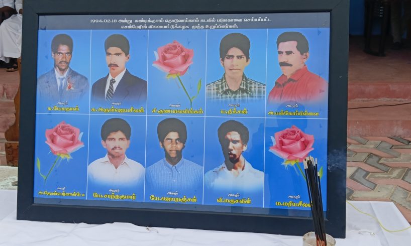லங்கா கடற்படையால் படுகொலை செய்யப்பட்ட கடற்றொழிலாளர்களுக்கு 32ஆம் ஆண்டு நினைவேந்தல் கட்டைக்காடு சென்மேரிஸ் மைதானத்தில் உணர்வெழுச்சியுடன் அனுஷ்டிக்கப்பட்டது.