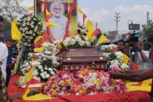 சாந்தனின் வித்துடல் தாங்கிய ஊர்திப்பவனி சற்றுமுன் வல்வெட்டித்துறையை சென்றடைந்ததுடன், அங்கிருந்து ஆலடி வீதியூடாக தமிழீழத் தேசியத் தலைவரின் பூர்வீக இல்லம் அமைந்திருந்த வளாகத்தில் மக்கள் அஞ்சலிக்காக வைக்கப்பட்டுள்ளது. குறித்த இடத்தில் மக்கள் உணர்வுபூர்வமாக தமது அஞ்சலியை செலுத்தி விருகின்றனர் இதேவேளை இறுதி ஊர்வலமானது பொலிகண்டி... Read more »