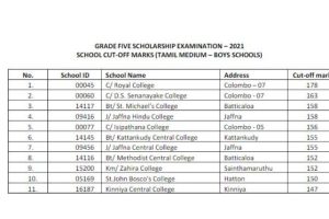 2021 ஆம் ஆண்டுக்கான புலமைப்பரிசில் பரீட்சை பெறுபேறுகளுக்கான வெட்டுப்புள்ளிகள் வெளியிடப்பட்டுள்ளன. நியாயமான காரணத்திற்காக பாடசாலையை மாற்ற விரும்பும் மாணவர்களுக்கு எதிர்வரும் காலங்களில் இணையத்தின் ஊடாக விண்ணப்பங்களை சமர்ப்பிக்கும் வசதி வழங்கப்படும் என கல்வி அமைச்சு தெரிவித்துள்ளது. அதன்படி, புலமைப்பரிசில் பெறுபேறுகளின் அடிப்படையில் தமிழ் மொழி... Read more »