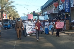 எங்களை வாழ விடுங்கள் என்ற கோசத்துடன் மட்டக்களப்பு காத்தான்குடியில் அரசாங்கத்திற்கு எதிரான போராட்டம் முன்னெடுக்கப்பட்டது. நேற்று மாலை காத்தான்குடி தெற்கு எல்லையிலிருந்து காத்தான்குடி பிரதான வீதி வழியாக கோசங்களை எழுப்பியவாறும் பதாதைகளை தாங்கியும் இந்த ஆர்ப்பாட்டம் இடம் பெற்றது. காத்தான்குடி பிரதான வீதி வழியாக... Read more »