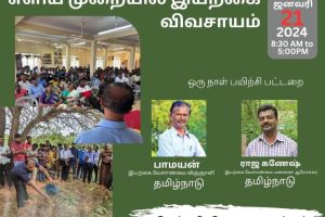 தமிழ்நாட்டின் இயற்கை விவசாய விஞ்ஞானி பாமயன் அவர்களால் நடாத்தப்படும் எளிய முறையில் இயற்கை விவசாய பயிற்சி பட்டறை 21.01.2024 ஞாயிற்றுக்கிழமை காலை 8.30 மணிக்கு, யாழ்ப்பாணம் வடமராட்சி தெற்கு மேற்கு (கரவெட்டி) பிரதேச சபை மண்டபத்தில் ஆரம்பமாகிறது. இயற்கை விவசாயம் தொடர்பில் முழுநாள் கருத்தரங்காக... Read more »